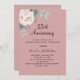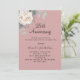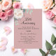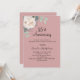 A dusty rose coloured background. Decorated with a white floral, peony flower and green watercolored eucalyptus greenery. Personalise and add your names and the details