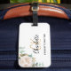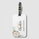 A stylish white background. Decorated with a white watercolored floral, peony, eucalyptus greenery and golden sprigs. Personalise and add your first name, monogram initials and full name. The name is written with a hand lettered style script.