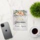 Spring Floral bouquet and gold tiara on a white pearl background embellish the front of this folded card invite. The inside features a placeholder for a photo and the details of the event.