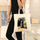 Fun budget tote for wine lovers features AI generated "still life" watercolor painting of a wine bottle adorned with a pink floral bouquet.