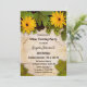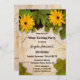 Birthday party invitation featuring a wine theme with hanging grapes and leaves on a rustic background wall with happy yellow flowers. Customisable for either a wine tasting or a birthday party or both.