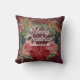 Merry Christmas pillow - beautiful watercolor floral wreath, colourful vintage design with red poinsettia, roses, berries and greenery