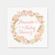 These lovely paper napkins featuring a floral wreath illustration and fancy script type can be personalised for a baby shower. Add the mother-to-be's name and the date of the shower.