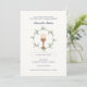 Elegant First Communion invitation featuring a graceful floral wreath of leaves and branches surrounding bread and chalice symbols. Editable text allows you to personalise every detail, with a matching botanical pattern on the reverse for a refined, cohesive look.