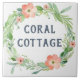 custom house name plate,personalised house name plaque,personal customised text sign,green floral wreath ceramic tile,leafy watercolor leaves circle,plant leaf circular round nature,girly pink flower flowers,family surname home signage,decorative simple rustic leaf villa,green and white painted art