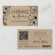 Floral Wreath Handmade | Handcrafted Kraft Paper Business Card -- Features line art flowers wrapping the left and right sides of the front of the card, along with your business name and website address. On back is a customisable QR Code for web address of your choosing, your tag line on the top right with a line and your name below. The bottom left features optional template fields for your office and cell phone numbers as well as your email address. The bottom right features a variety of social media icons--you can use these for this purpose, swap them for icons of your choosing or delete them altogether. All colours, text and backgrounds are editable.