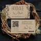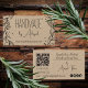 Floral Wreath Handmade | Handcrafted Business Card -- Features line art leaves wrapping the left and right sides of the front of the card, along with your business name and website address. On back is a customisable QR Code for web address of your choosing, your tag line on the top right with a line and your name below. The bottom left features optional template fields for your office and cell phone numbers as well as your email address. The bottom right features a variety of social media icons--you can use these for this purpose, swap them for icons of your choosing or delete them altogether. All colours, text and backgrounds are editable.