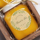 Custom-designed wedding honey favour stickers/labels featuring whimsical watercolor floral wreath on rustic brown kraft background. Personalise with bride and grooms' names and wedding date. Perfect on wedding envelopes, favour bags, honey jars, and more!
