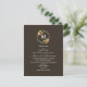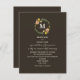 A fall or autumn monogram wedding invitation featuring an illustration of flowers and greenery arranged in circle at top. Personalise with your initial inside circle. Personalise the text with details of your occasion. Wording is from bride and groom.