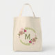 A bag featuring an illustration of flowers and greenery arranged in a circle. Personalise with your initial at centre.