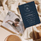 Floral Wreath Navy Blue Monogram Photo Wedding Invitation