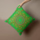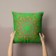 Bright and refreshing, this pillow showcases a vivid green backdrop with a delicate wreath of pink flowers. A lively piece that brings nature-inspired charm into any living room or bedroom.
