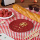 Floral wreath thank you red Chinese wedding Paper Plate