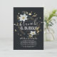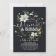 Modern Vintage Elegant Brunch and Bubbly Bridal Shower Invitation Template - Elegant Black White and Gold Floral Wreath.