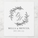 Custom-designed wedding wine bottle labels featuring modern calligraphy with hand-drawn style floral wreath design.