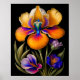 A highly detailed, imaginative illustration of a yellow and blue iris flower. Rendered in exquisite detail with an airbrush technique that gives it a soft, ethereal quality. A beautiful and captivating artistic expression of the intricate beauty of iris flowers.