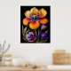 Floral Yellow Blue Botanical Illustration Poster