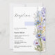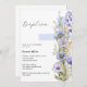 A white background, with a large light blue cross decorated with blue flowers. Personalise and add the name and details details.
