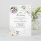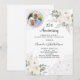 For an elegant and romantic 25th wedding anniversary. A white background decorated with white florals, roses and white lace. Personalise and add your photo, names and details.