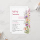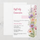 A white background, with a large pink cross decorated with pink and purple flowers. Personalise and add the name and details details.
