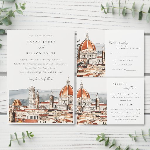 Florence Cathedral Italy Watercolor Wedding Designed by YellowFeb Studio