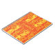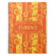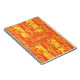 A colourful, lively two toned design with bright yellow and orange flowers against a striped yellow and orange background.
