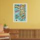 This vintage colourful Florida Map is sized to 24x32 with a cream & turquoise border. This was a old postcard image so there is some pixelation but it adds to the vintage look and happily the city and attraction names are clear. There is a close up photo of a portion of the enlarged image in the media column on the right side of the shop's home page. It shows more clearly how the print will look.