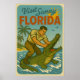 This vicious alligator is no match for this fearless, muscle bound Florida man. as he wrestles the thrashing beach gator into submission with ease. Vintage-inspired 'Visit Sunny Florida' is a humorous spin on a classic Florida travel poster and designed to make you chuckle. A perfect lighthearted addition to coastal home decor, beach houses, or anywhere a little Florida chaos feels right.