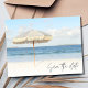 Florida beach wedding save the date postcards for your destination wedding. This umbrella on the beach design postcard is the perfect way to announce your wedding plans to your family and friends.