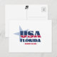 Florida postcard. A creative typography design that encapsulates Florida's essence with bold red, white, and blue colours, and patriotic elements, including stars and stripes.