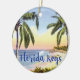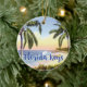 Florida Keys beach scene with palm trees from a vintage postcard really captures the laid back essence of the Keys. "Florida Keys" name in fun script font at the bottom.