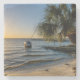 Florida Leaning Palm Tree Sunset Stone Coaster