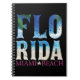This trendy, elegant summer notebook of 2023, A design that contains the word Florida, with the effect of the sea, the sun, and trees, and is chraacterised by the blue colours of the sea and yellow sand, and underneath it is the word Miami Beach in fuchsia
