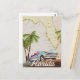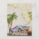 Beautiful illustrated map of the state of Florida and islands in the region in a beautiful vintage style featuring a retro 1950s car.