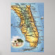 A vintage, retro Florida road map. it's colourful and full of the names of towns and cities throughout the state. This was an old linen postcard reproduced today in a poster print. We believe the 24x36 size is the best format but you can resize it if you like. We also have the image with a border for the best framing available on this site as well.
