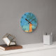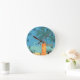 The clock did not take as long to arrive as I thought it might and was extremely well packaged. I didn't do the measurements so I didn't realize it is a little smaller than the average clock but that does not matter (just make sure you check if that's important to you).It is really nifty! It seems very solid and well made not flimsy at all. It has been going well and has kept good time in its few weeks on my wall. Nice product. Gets noticed too! Nicer in real life than the picture but true to the picture
