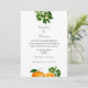 Stylish destination wedding invitation ideal for couples getting married in Florida; features oranges and orange blossom with polka dot spots on the reverse. A very pretty design, easy to customise with your wedding details.