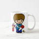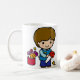 Cute boy in an apron with a bouquet of flowers and flowers in the background. For the florist or flower farmer.