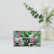 Florist business card template with tulip flower bouquet photo. Elegant script typography with customisable floral image. Upload your own beautiful picture or chic design in the background. Colourful cheerful pink flower close up photography. Make your company stylish cards for your classy shop.