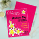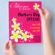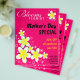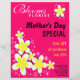 Frangipani Flowers © Sunny Mars Designs. Cute, pretty custom printed florist flyers with a yellow and white Plumeria Frangipani flowers design against a fuchsia or hot pink background. Personalize it by adding your business name and other text to it.