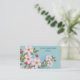 A business card design suitable for a florist or flower shop business. This card features some brightly coloured cute, stylish daisy flowers against a light, sky blue background. This card is fully customisable to be able to include your own details of your own business.