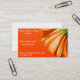 A business card design suitable for a florist or flower shop business. This card features some brightly coloured orange Gerbera floral photography design against an orange background. This card is fully customisable to be able to include your own details of your own business.