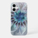 Flourish Abstract Modern Fractal Flower With Blue iPhone 16 Case