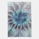 Flourish Abstract Modern Fractal Flower With Blue Tea Towel