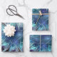 Flourish Abstract Modern Fractal Flower With Blue Wrapping Paper Sheet