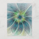 Flourish Fantasy Modern Blue Green Fractal Flower Postcard