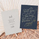 Ask your best girls to stand with you with these beautiful cards. Design features "will you be my bridesmaid" in embellished gold foil script typography with a subtle heart worked into the design, on a navy blue background. Add a custom personalised message to the back in modern handwritten script and classic serif lettering.