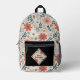 A beautiful girly boho backpack, decorated with a sweet floral pattern in a muted palette .