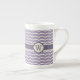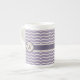 Enjoy a fun zigzag pattern with a pretty flourish as the beige zigzag curves up and down to points in a shape inspired by lotus petals. This flourished zigzag sits on top of a pleasant lilac background for a soothing contrast. Customise the monogram with the appropriate initial for a personalised touch. This mug is available in jumbo, espresso, and bone china sizes and styles.