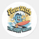 Flow With The Happy Waves Waterproof Sticker adds a splash of joy to your surfaces! This high-quality vinyl sticker features a cartoon wave character surfing happily with a sunny backdrop in retro colours.